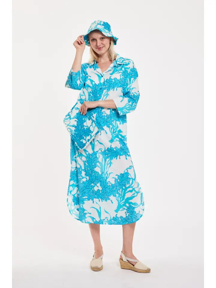 Gabriella Midi Caftan Swimsuit Cover (Blue)