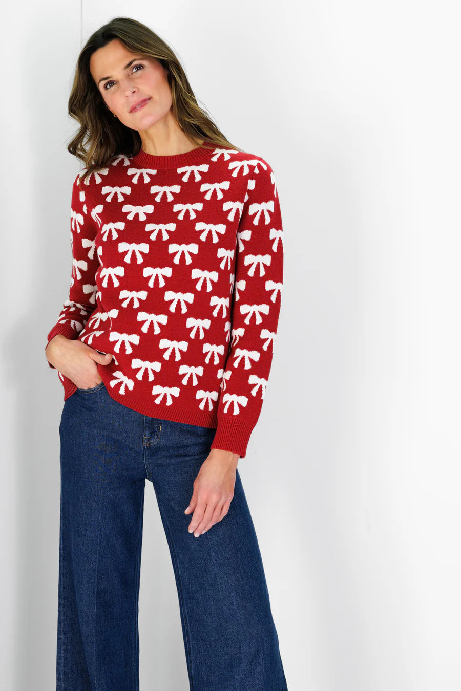 Your newest holiday sweater obsession is here & it’s 100% cotton! A relaxed fit, and intarsia bows all come together to create the perfect festive closet essential. Whether paired with your favorite denim or paired with a holiday skirt, this sweater effortlessly elevates your look! Bonus - Our Cotton Heirloom Sweaters are WASHABLE! So feel free to wear this incredibly soft sweater on repeat all season long.